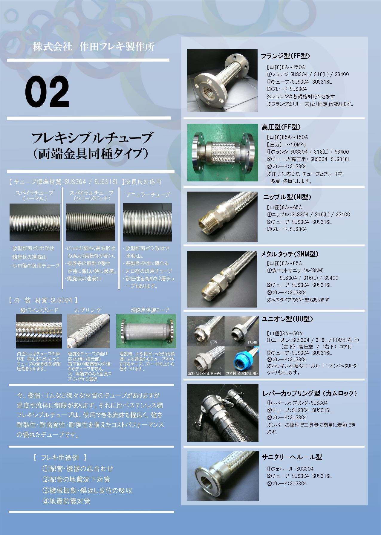 創業1962年来、『ベローズ型伸縮管継手』『フレキシブルメタルホース』を自社にて設計・製造をしております。多くのプラント設備や水処理、環境設備等へ納品させて頂いております。その多くの実績を基に、設計・検証試験によってアップデートした豊富なデータと、製作技術を磨き「安心・安全・確実な製品を融通のきかせたモノづくり」でこれからも社会インフラのお役にたてるよう、より一層の完成度を高めていく所存です。