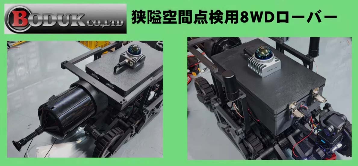 狭隘空間インフラ点検における電波問題、自己位置把握問題を解決した8WDドローン・ローバー