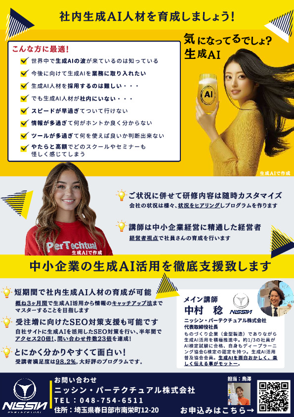 当社ブースでは、各種運搬・搬送ロボットの実機デモンストレーションを行います。また日本でも数少ない最先端の5軸フェムト秒パルスレーザー加工技術による様々な微細加工サンプルや超硬金型を展示。生成AIを最大限に活用した独自のブースデザインやユニークな仕掛けで技術の魅力を楽しみながら体験いただけます。生成AI活用支援事業の詳細も紹介いたしておりますので、ものづくり業界最前線の取り組みをぜひご体感ください。