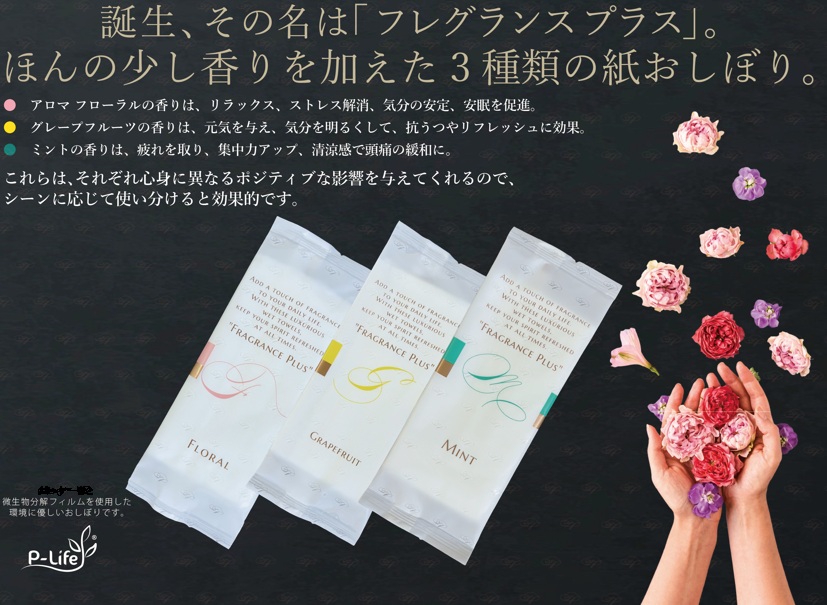世界初の紙おしぼり革命! フィルムも微生物分解する環境に優しい完全微生物分解紙おしぼり「eco+P」シリーズ