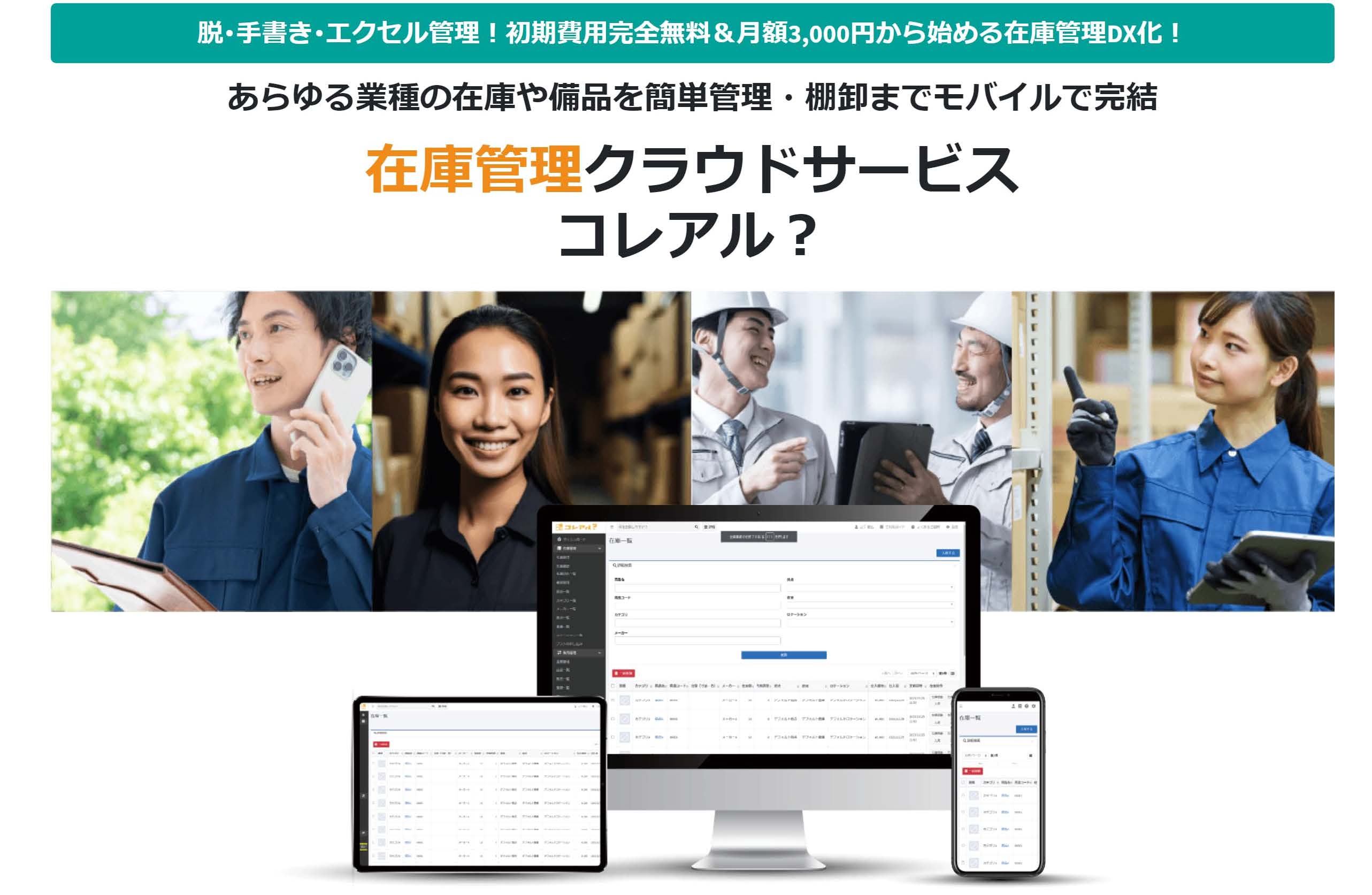 【コレアル】在庫管理システムは、あらゆる業種の商品や原材料、備品、機械工具などの在庫を簡単管理。棚卸もスマホやモバイル端末で完結できる在庫管理クラウドサービスです。『QRコード生成機能』を搭載していますので在庫編集や入出庫管理も簡単かつスピーディーにご利用できます。在庫管理のDX化を初期費用完全無料で業界最安値の月額3000円からローコストで実現できます。