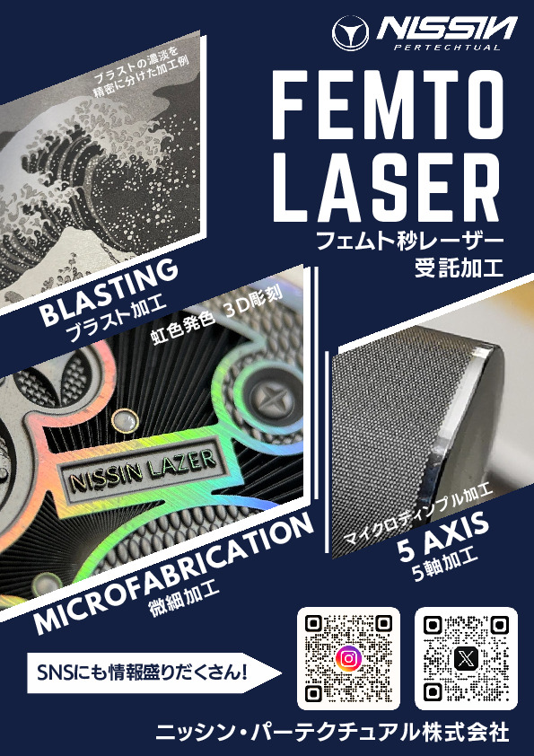 当社ブースでは、各種運搬・搬送ロボットの実機デモンストレーションを行います。また日本でも数少ない最先端の5軸フェムト秒パルスレーザー加工技術による様々な微細加工サンプルや超硬金型を展示。生成AIを最大限に活用した独自のブースデザインやユニークな仕掛けで技術の魅力を楽しみながら体験いただけます。生成AI活用支援事業の詳細も紹介いたしておりますので、ものづくり業界最前線の取り組みをぜひご体感ください。