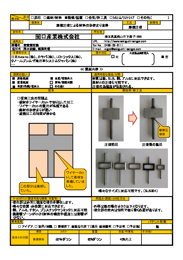 冷間鍛造から機械加工まで一貫生産対応しており、最も合理的な加工方法と工程を常に追求しております。今日まで弊社が続けて来られた理由として、競争力を有する価格で提供している事、品質・納期が安定している事、弊社の技術力・提案力が評価されてきたからだと思っております。是非ご検討いただきたいと思います。